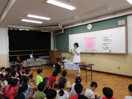 7月4日(木)に歯みがき巡回指導を行いました。歯科衛生士さんにパネルシアターをしてもらい,歯みがきの重要性が分かった子どもたち。みがき方の勉強も一生懸命にやりました。