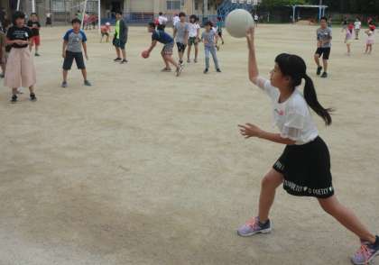 今日のみんなあそびはドッチボールです。
