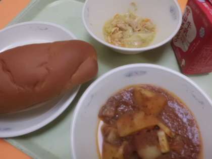 牛肉のトマト煮こみは,香りをつけるためにバジルを使いました。時間をかけて煮こんだので,具材が柔らかく美味しかったです。児童からは「パンとの相性が良かった」「香りが良かった」などの声を聞かせてくれました。