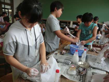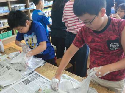 作品のイメージが見えてきたら,丸めた新聞紙など
