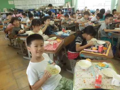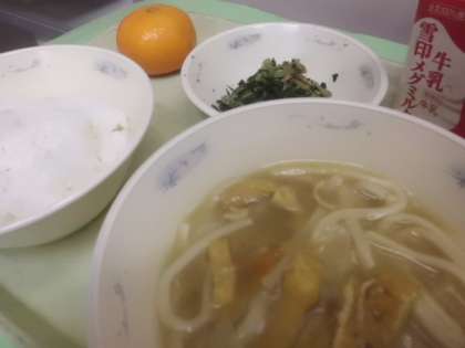 カレーうどんは,けずりぶしとだし昆布を使って出汁をとりました。カレー粉と出汁の相性がよく美味しかったです。児童からは「麺が柔らかくて美味しかった」「麺と出汁が絡まって美味しかった」などの声を聞かせてくれました。