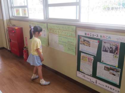 職員室の前には,にこにこの日に学習した掲示物が貼られています。