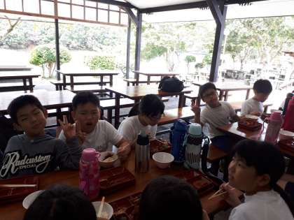 海、深谷水道のそばの野外炊事場で、昼御飯です。