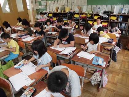 夏休み明けでしたが,子どもたちのがんばりがさっそく見られました。プリントのお直しに,集中して取り組んでいます。