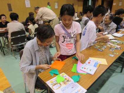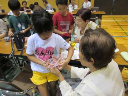 メニューはいろいろ。あやとり,おり紙,しりとり,あっちむいてホイ。教えてもらったり,教えたり。自然に会話が弾みました。