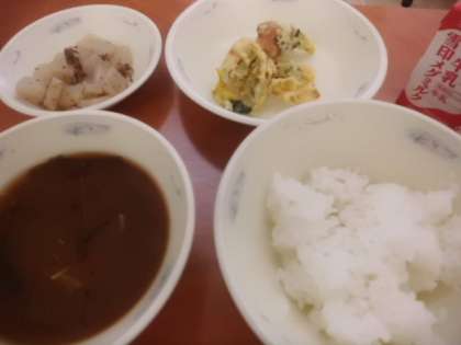 赤だしは,信州みそと八丁みそを使って作りました。飲みやすい味つけで美味しかったです。