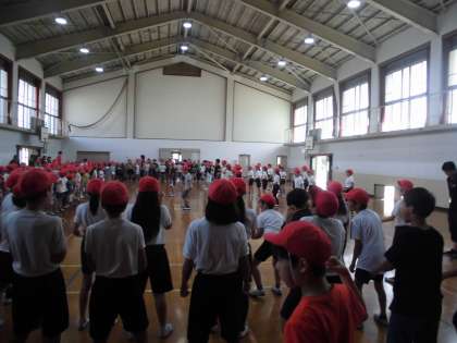 2時間目に色別集会があり,赤組・白組に分かれて応援の練習をしました。
