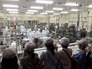 3年生の社会科の学習で,おたべ工場の見学に行きました。小豆やお米,水にこだわって作っていることが伝わってくるパネル見学したり,工場の生産ラインを見学して,機械がしているところ,手作業で工夫していること,1時間で作ることができる量,どんなことをチェックしているのかなど,疑問に思っていることをたくさん見たり聞いたりできて,充実した見学になりました。