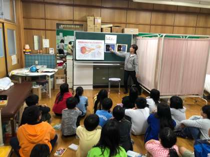 本日,視力検査を行いました。視力検査の前に,目についての学習も行いました。物が見える仕組みだけでなく,目が疲れた時の体操も教えてもらいました。視力検査では,「前よりも悪くなった」と言っている子が何人も見られました。検査結果は後日配布しますので,視力が低下していた場合は,早めの受診をお願いします。