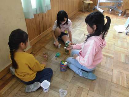 生活科の「あそんで ためして くふうして」の勉強で,身近にあるものを使って遊びました。今回は,ゲーム形式を意識し,ルールを決めながら遊びを考えました。友だち同士で作ったゲームで遊んで楽しみました。