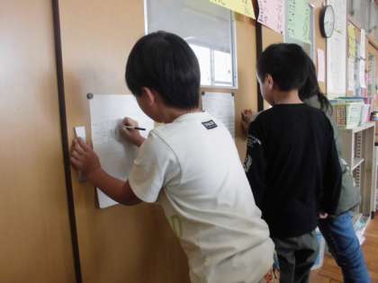 イベント係が,みんなで楽しむために,クラスのみんなが何をしたいのかアンケートを取りました。係の自分たちがやりたいことをやるのではなく,みんなの意見を反映させようという姿がとても良いなと思いました。