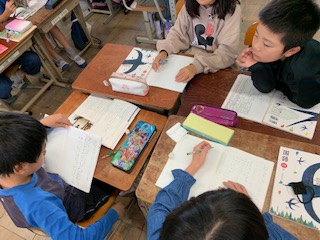 登場人物であるごんと兵十の気持ちの変化について考え,グループで交流しました。話の流れに沿って話し合いを進め,友だちの様々な考えにふれる姿が多く見られました。