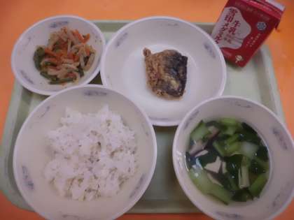 さばのたつたあげは,醤油や生姜・料理酒で下味をつけてから揚げました。児童からは「衣がサクサクでおいしかった」「味がしっかりしていておいしかった」などの声を聞かせてくれました。