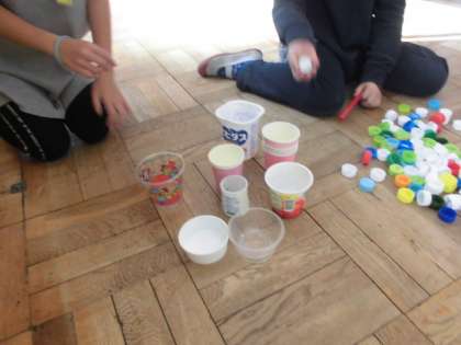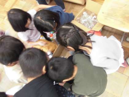 生活科の「あそんで ためして くふうして」の学習で,身近にある材料を使って遊びを考えています。今日は,今までに使ったことのない材料を使って,どんな遊びができるか考えました。友達とルールを工夫しながら,楽しく遊んでいましたよ!
