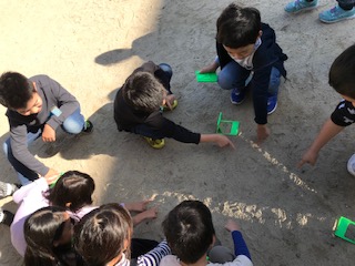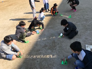 理科の学習で,太陽の光がどのように進むのかを実験しました。「かげがまっすぐ映るから,光はまっすぐ進んでいると思う」という予想のもと,鏡を使って,日かげに太陽の光を当てると,光がまっすぐ進んでいることを確認できました。鏡をうまく合わせると,光を反射させることもできて,子ども達は驚きの声をあげていました。
