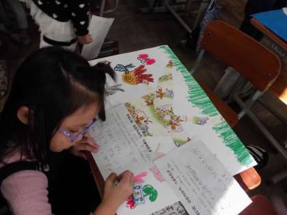 図画工作科「やぶいた かたちから うまれたよ」では,出来上がった作品の鑑賞会をしました。アイデアが面白いもの,丁寧にはっているもの,迫力があるものなど…。子どもたちは自分の視点でお気に入りの作品を探しました。