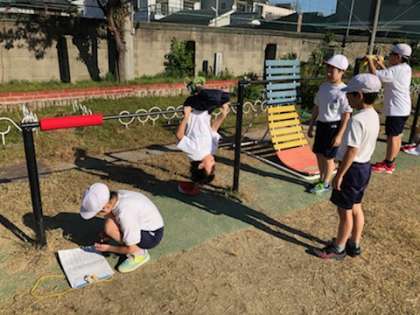 体育では鉄棒を行っています。最初はできなかった技が,どんどんできるようになってきています。この調子でできることを増やしてほしいです。