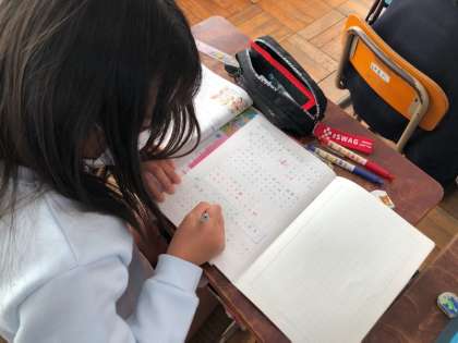 算数で平均の学習を進めています。今回は「0」が含まれている時の平均の求め方を考えました。「0」が含まている時も「0」を一つの数として考え,計算することを学びました。