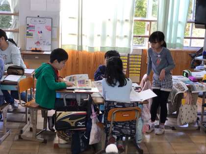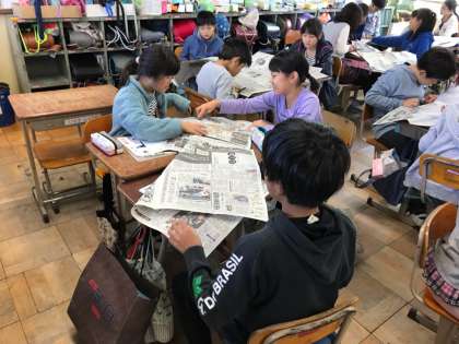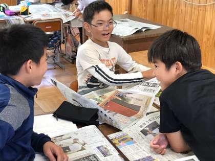 国語科の学習で新聞の写真から「アップ」の写真や「ルーズ」の写真を見つけ