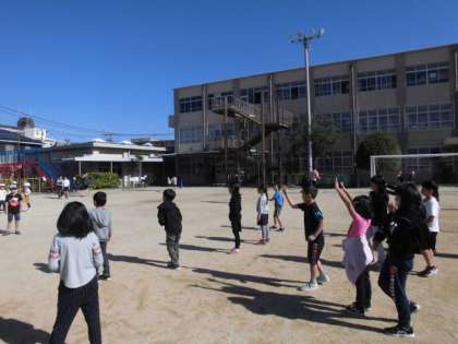 今日は,イベント係がみんなでしたい遊びをアンケートで集約し,ドッジボールをしました。みんなが楽しめるように,パスを回し,声を掛け合って遊んでいましたよ!