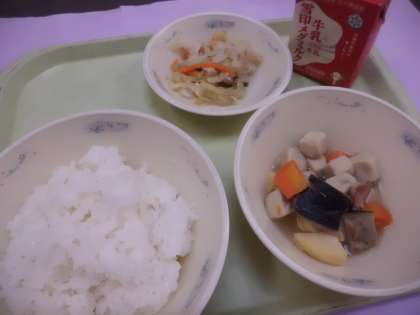 ごま酢煮は,キャベツや人参・細切こんぶが入っていました。キャベツや人参を蒸して調理したので,野菜の甘さを感じる事ができました。