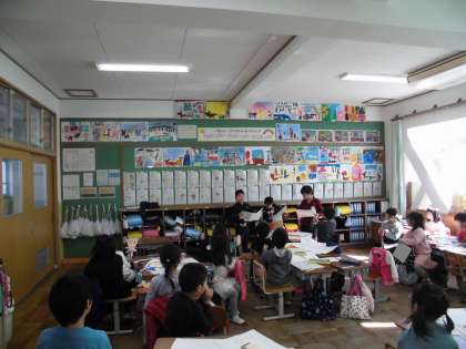 学習発表会に向けての準備が着々と進んでいます。発表の準備ができたグループが試しに発表。まだまだ改善できるポイントを見つけて,次の時間につないでいこうとしていました。