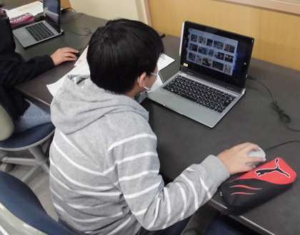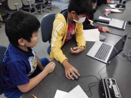 聞き手にとってわかりやすい構成や資料提示の方法を工夫しながら,「京都の魅力」を正確に伝える準備をしています。パソコン操作もスムーズです。さすが6年生です。