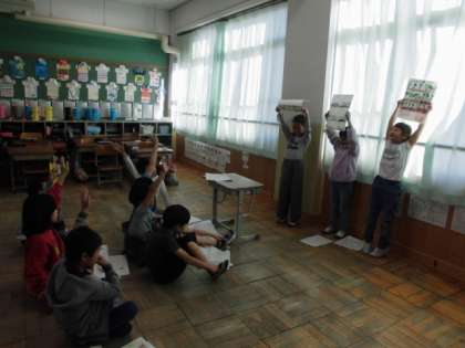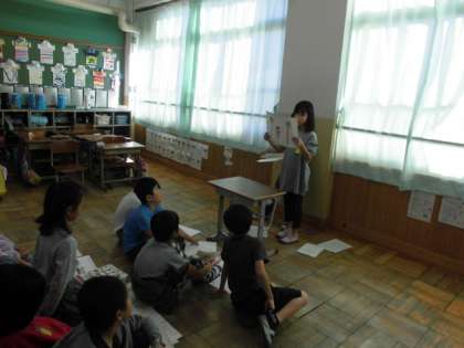 クラスの中でミニ発表会をしました。発表する側は,相手意識を持って,声の大きさや立ち方を意識して練習しました。聞く側は,姿勢よく,発表する相手を見て聞くように心がけました。また発表のあとには,質問や感想を交流することで,発表する人と聞く人とで一体となって発表会の雰囲気を作っていました。