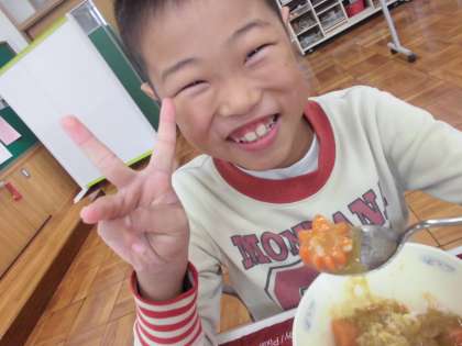 昨日の給食カレーで,幸運のしあわせニンジンをひきあてたのは!
