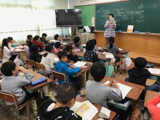 国語科で学習する三年とうげを,司書教諭の先生に読み聞かせてもらいました。初めて聞く子も多い中,トルトリがどのように事件を解決していくのか興味をもって聞いていました。