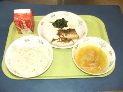 今日は電子紙芝居で「魚の食べ方」について説明しました。1年生は、骨を取るのに苦戦してましたが、上手に取れると魚の骨を取って見せてくれました。