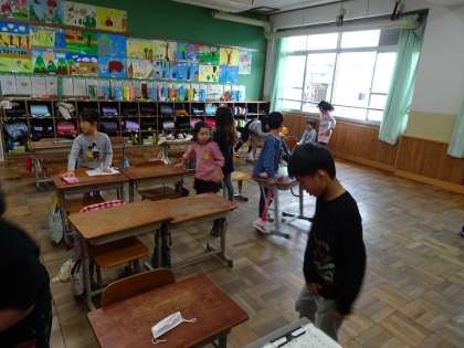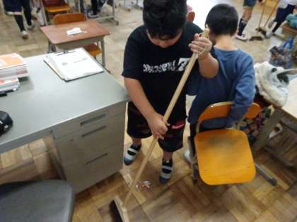 掃除時間の一コマです。全員掃除を目指して頑張っています。てきぱき活動しています。