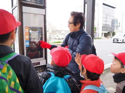 表示の説明を受ける児童。