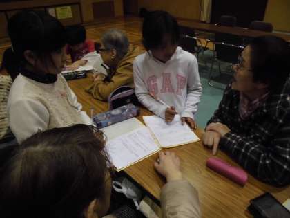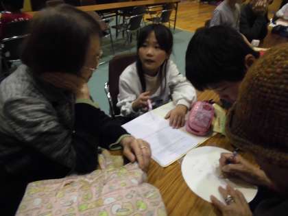 今日の活動のしめくくりは,お年寄りの方へのインタビューです。自分の用意した遊びや自分の接し方がどうだったか感想を聞いて,最後の交流会に生かしていきます。