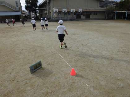 寒くなってきました。鉄棒の前に5分間走って体を温めました。「歩かない・同じペースで・自分のペースで」というめあてで走りました。ちょうどよいペースを見つけるのが難しかったようで,途中で苦しくて歩いてしまう子や,走り終えた後も疲れを見せることなく運動場を走り回っている子もいました。