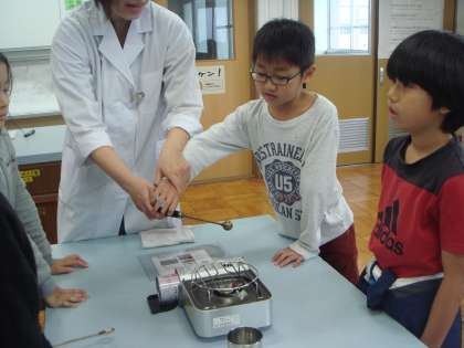 冷やしてから鉄の輪を通したりして 変化を調べました。