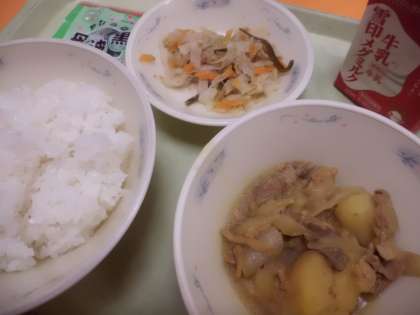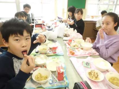 肉じゃが(カレー味)は,じっくりと煮こんだので,野菜がやわらかく,味も染みていました。児童からは,「じゃが芋がホクホクでおいしかった」「カレーの味がしっかりしていて,おいしかった」などの声を聞かせてくれました。