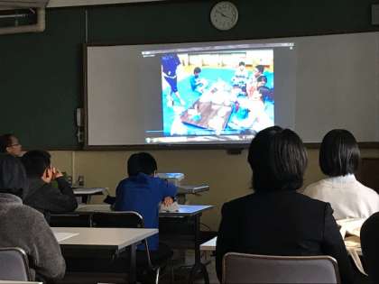 映像でキャンプを振り返り、アンケート結果をもとに活動を振り返りました。