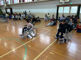 はじめに車イスの扱い方について知り,実際に車イスに乗って,扱い方を知りました。悪戦苦闘しながらも,思い通りの方向に進むにはどうすれば良いのか考え,体験することができました。