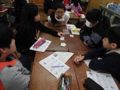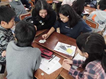 班でカードゲームを楽しみながら,学校行事の発音