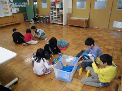 雨が降ってくれたおかげで,くすのき学級が賑やかな休み時間になりました。ダンスを一緒に踊ったり,プラレールで一緒のに遊んだりしていました。くすのき学級の子どもたちも来てくれる子どもたちも,お話したりしながら,楽しそうに遊んでいました。