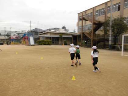 体育科では「ゆっくりかけあし」の学習が始まりました。2分間を同じスピードで走るのがねらいです。ペアの友だちを応援する心温まる姿も見られましたよ。