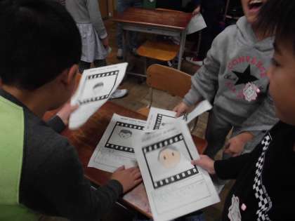 生活科「にこにこだいさくせん」では,友だちや先生のにこにこを集めて,カードに書きました。どんなときににこにこしていたか,友だちとカードを交換して,さらににこにこする場面を知ることができました。