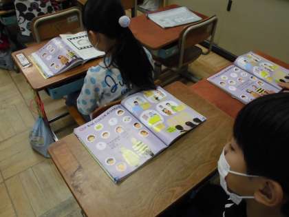 生活科「にこにこだいさくせん」では,おうちの人がどんなときににこにこするのか,教科書をもとに考えました。その後,おうちの人へのインタビューの仕方を練習。うまく調べられるでしょうか?