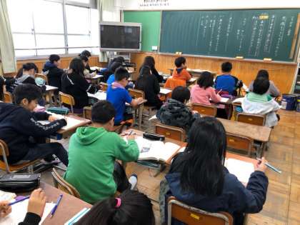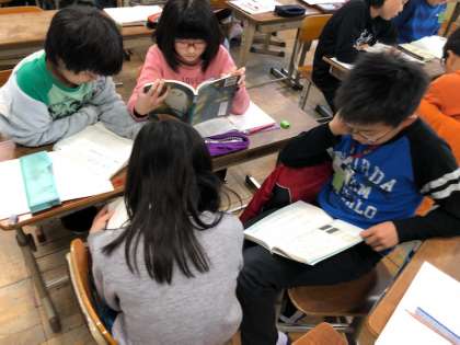 国語で「想像力のスイッチを入れよう」の単元の学習をしました。単元の最初なので,班での読み合い内容を確認していきました。その後は単元の学習計画を立てました。