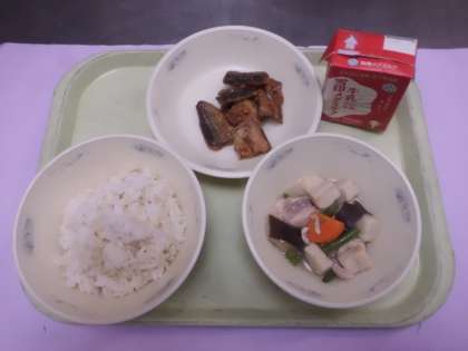 さんまのかばやき風は,調味液に漬けたさんまを揚げてから,タレと絡めて作りました。児童からは「甘くておいしかった」「魚は苦手だけど食べれた」などの声を聞かせてくれました。