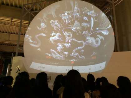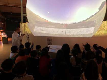 「くもダス」という科学センターの機械を使って,星座の観察をしました。星が動いていることで,季節によって見える星が異なることを学習しました。
