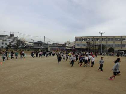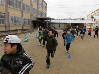 3年生は10日(金)から全校ランニングに取り組んでいます。今年は運動場の工事の関係で,低学年と走る時は外側の大きなコースを走り,高学年と走る時には内側の小さなコースを走っています。寒さに負けず,みんな積極的に頑張って走っています。