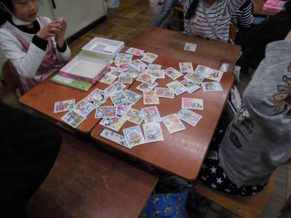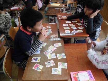 生活科「みんなであそぼう はる なつ あき ふゆ」では,お正月あそびの意味について勉強しました。その後はみんなで楽しくカルタ遊び。「他の遊びもやってみたい!」と意欲を高めていました。