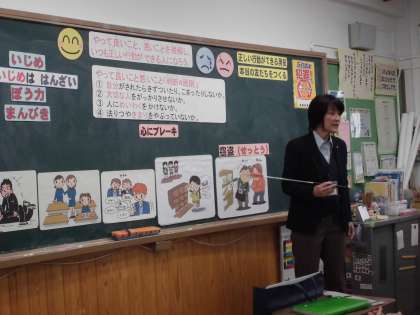 京都府警本部の婦警さんから,非行防止について話を聞きました。暴力・いじめ・万引きなど,いろいろな犯罪の話だけでなく,いつも正しく行動するために「やって良いこと悪いこと」を判断するポイントを教えてもらいました。そして,「心にブレーキ」「正しい行動がとれる勇気」「本当の友達をつくる」ことをキーワードにみんなで考えました。
